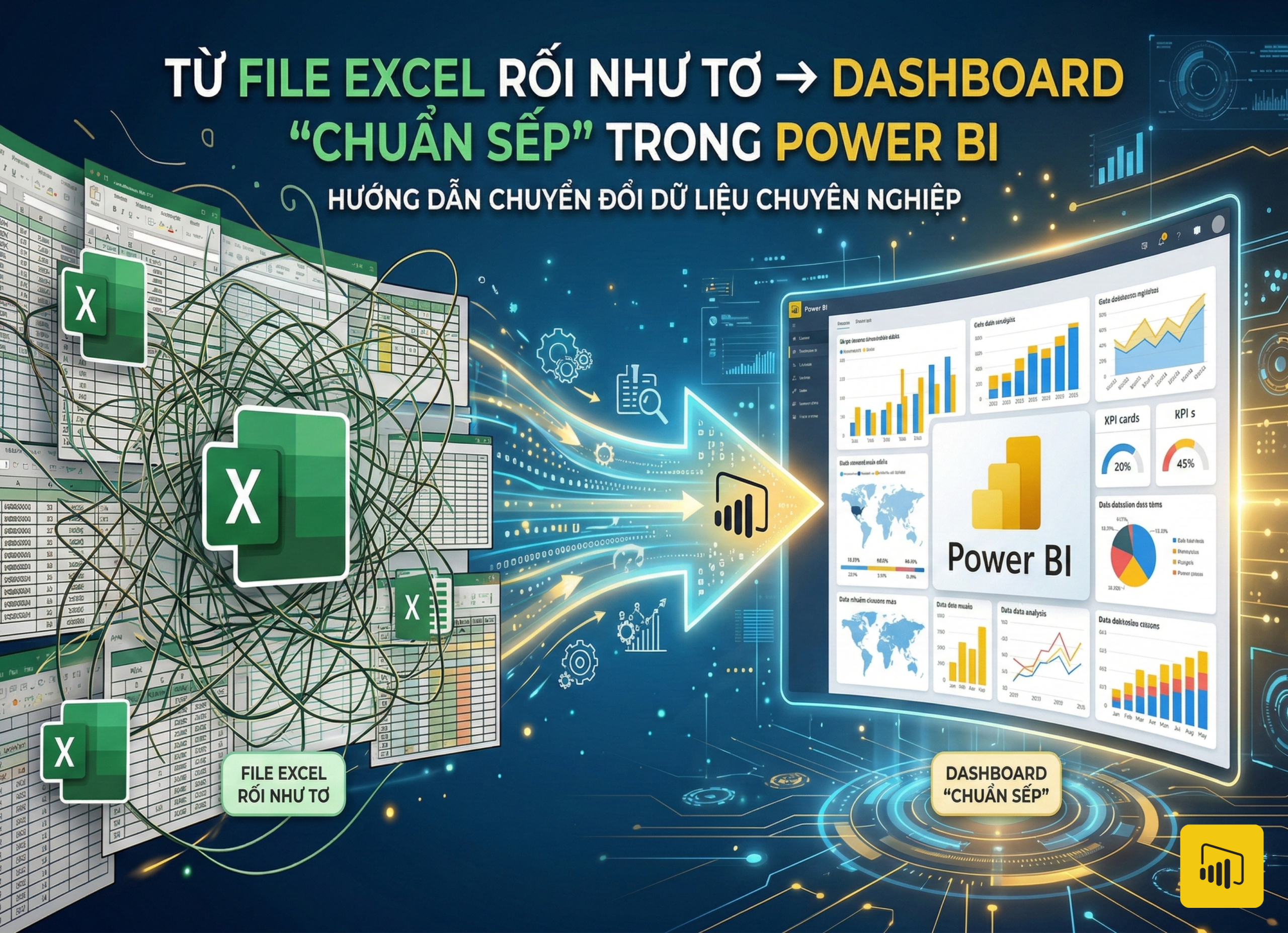 Từ file Excel rối như tơ đến Dashboard “chuẩn sếp” trong Power BI Bạn có đang gặp tình huống này? 1 file Excel 10+