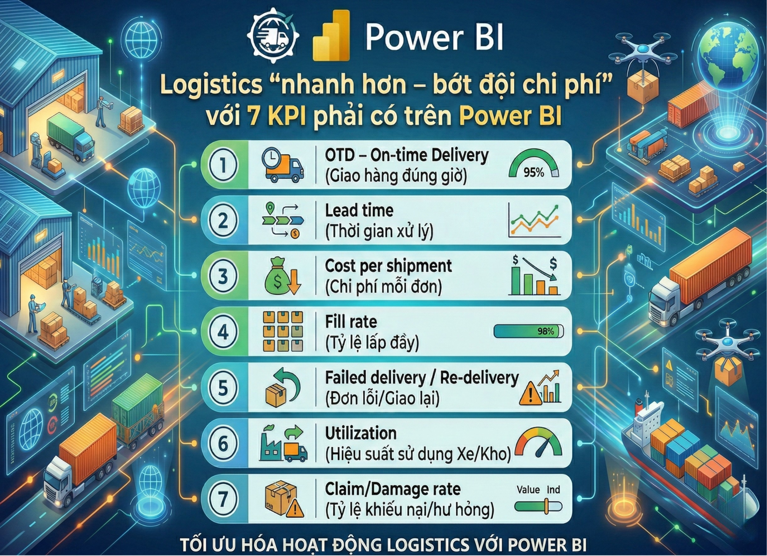 Làm Logistics hiệu quả hơn với dashboard Power BI: 7 KPI quan trọng cần theo dõi Trong ngành Logistics, dữ liệu luôn rất nhiều. Nhưng