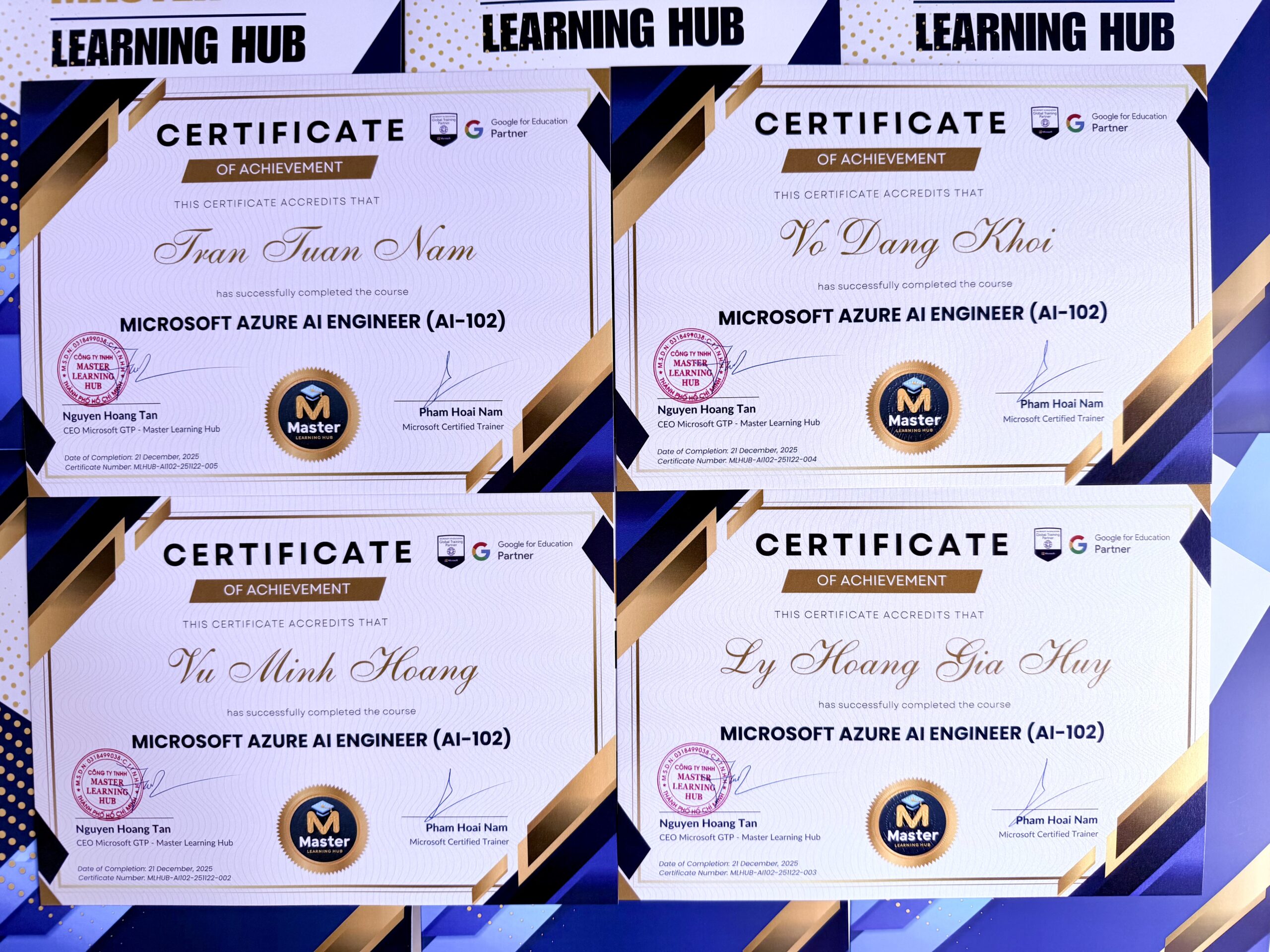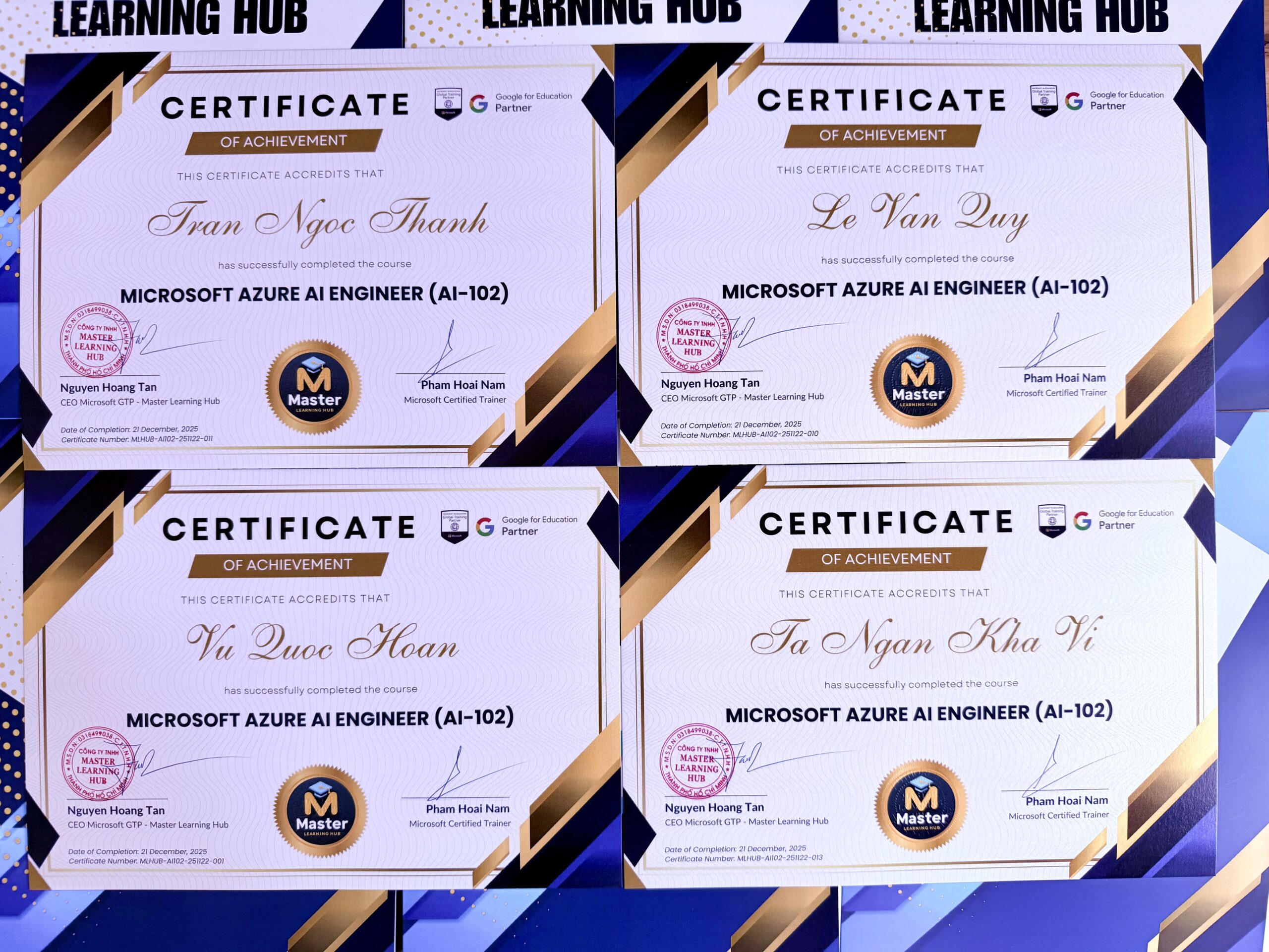 Master Learning Hub Academy xin chúc mừng các anh chị đã xuất sắc hoàn thành các khóa học Microsoft Azure AI Engineer (AI-102)