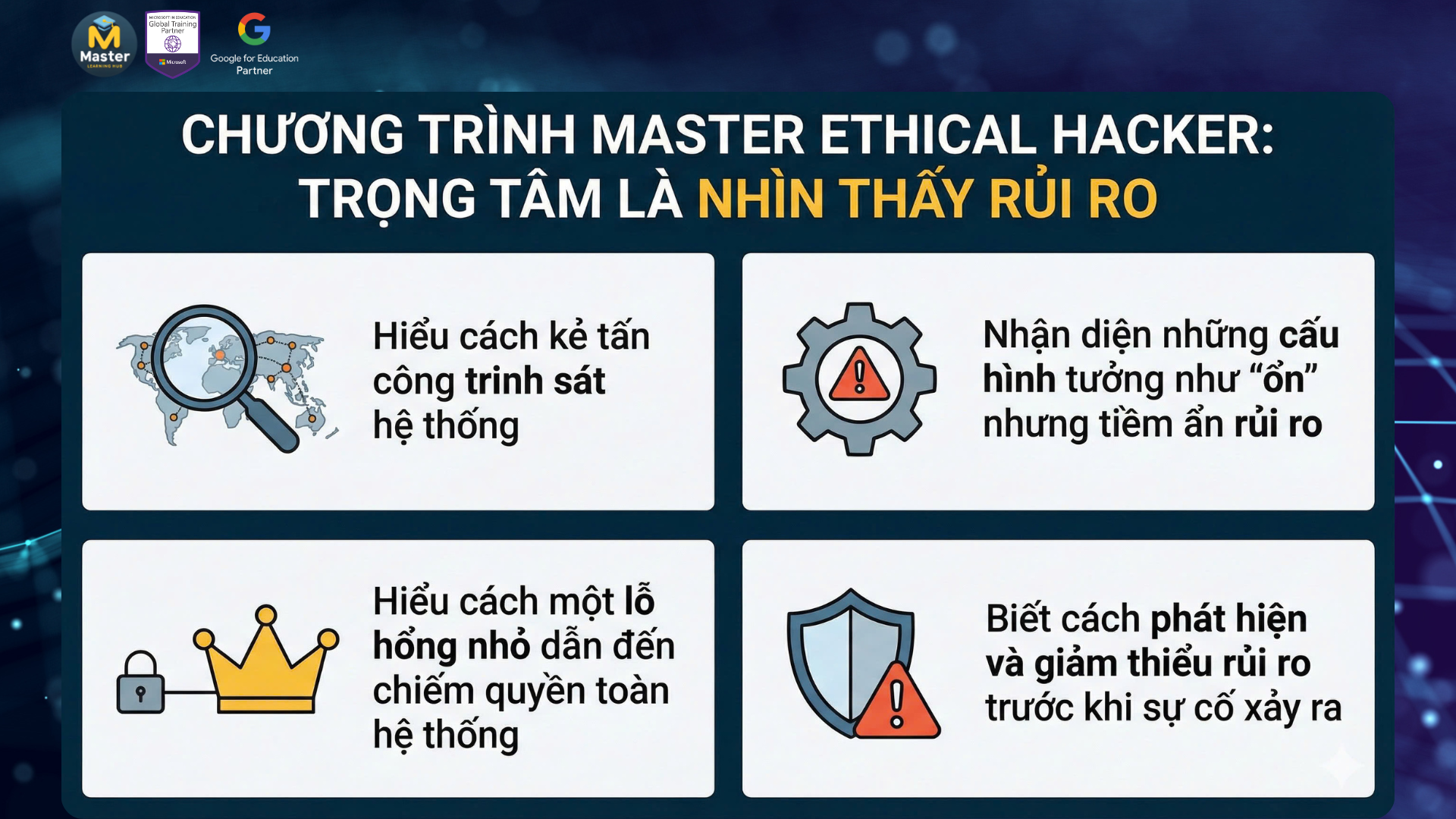 Master Ethical Hacker không dạy phá hoại – mà dạy nhìn thấy rủi ro