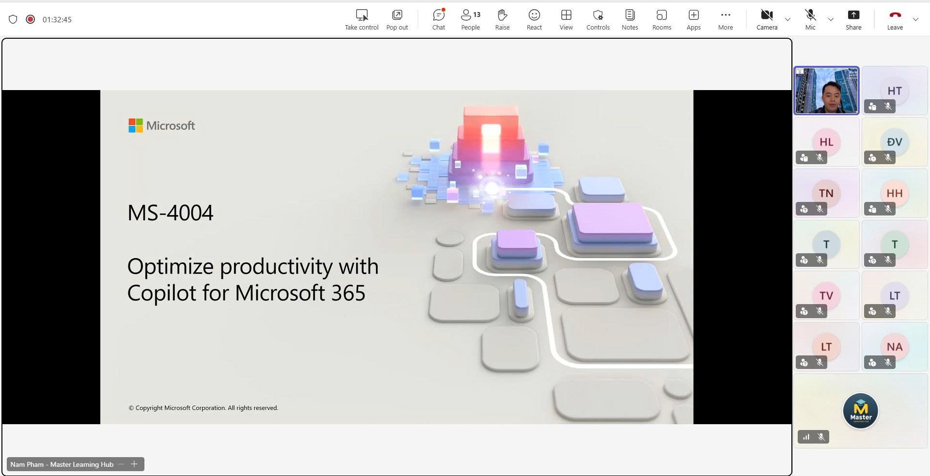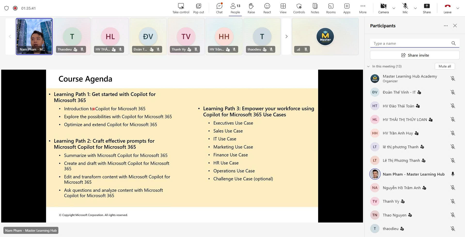 Vào ngày 10/03/2026, Master Learning Hub Academy đã khai giảng thành công lớp Master AI in Office. Khóa học được dẫn dắt bởi đội ngũ giảng viên Microsoft, với nhiều năm kinh nghiệm trong lĩnh vực ứng dụng Power Platform, AI và các giải pháp công nghệ của Microsoft.