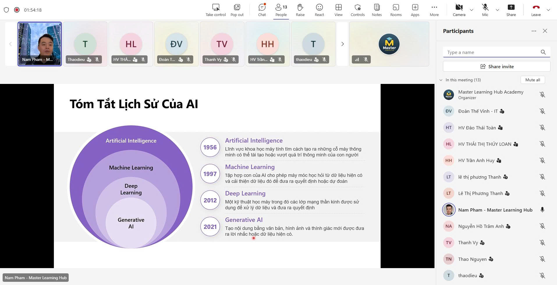 Với sự hướng dẫn tận tâm và chuyên sâu từ các giảng viên cảu Master Learning Hub, chúng tôi tin rằng các học viên sẽ không chỉ nắm vững kiến thức mà còn có khả năng áp dụng linh hoạt AI để mang lại giá trị vượt trội cho tổ chức của mình.
