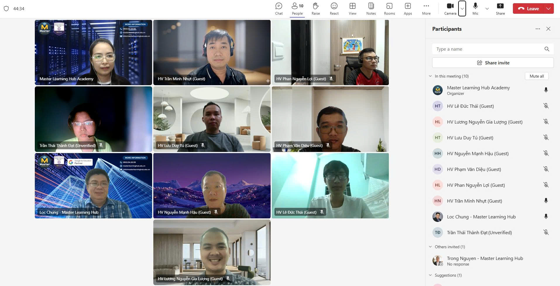 Chúng tôi xin gửi lời cảm ơn chân thành đến các học viên đã đồng hành cùng chúng tôi, và hy vọng rằng các anh/chị sẽ có một trải nghiệm học tập thú vị và hiệu quả tại Master Learning Hub Academy .