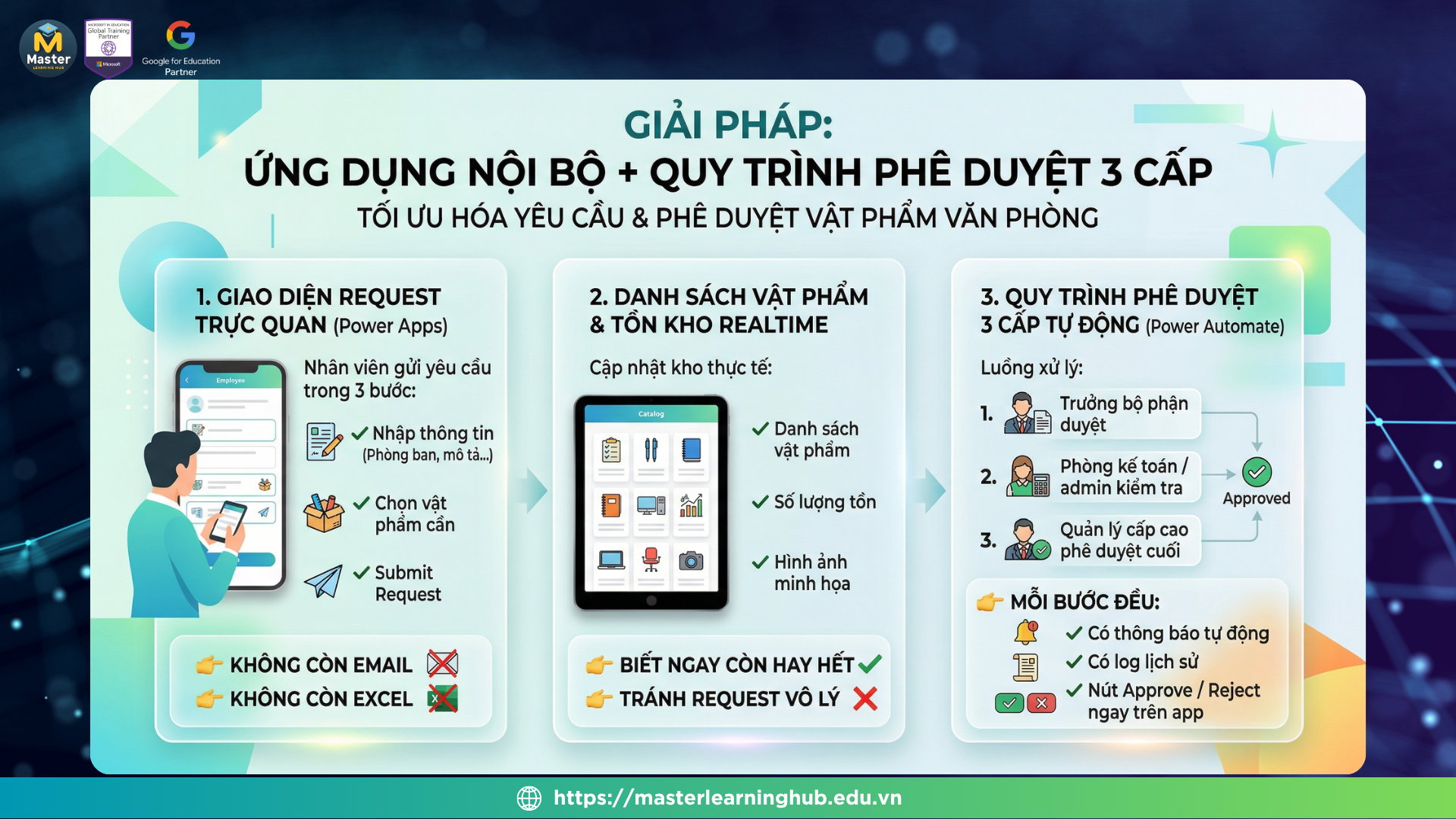 Nếu bạn đang muốn học cách tự xây dựng các ứng dụng như phê duyệt văn phòng phẩm, xin nghỉ phép, đề xuất thanh toán hoặc quản lý quy trình nội bộ bằng low-code, khóa học Power Platform là lựa chọn rất đáng để bắt đầu.