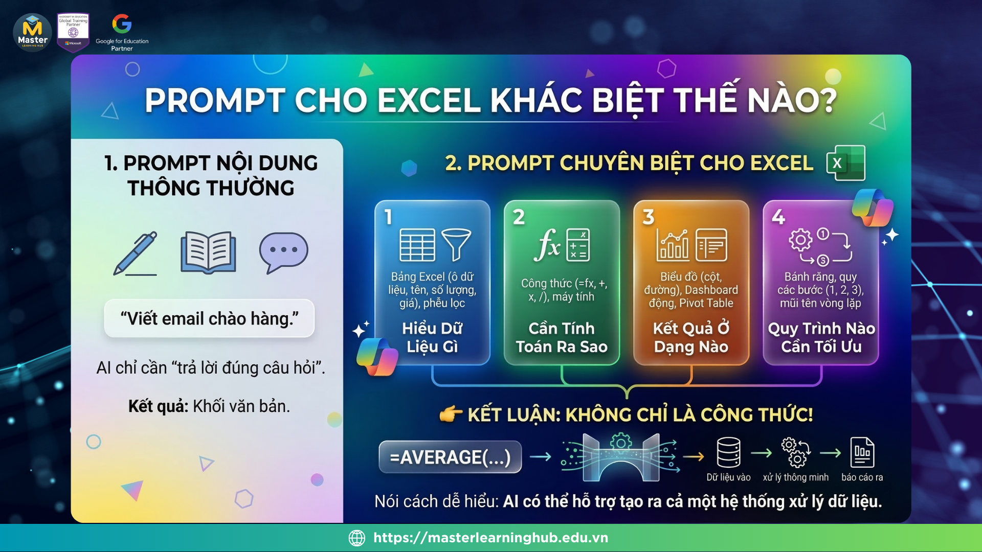 Bởi học không chỉ để biết công cụ này là gì, mà còn để biết cách đặt prompt đúng, hiểu logic xử lý dữ liệu và ứng dụng được ngay vào công việc thực tế.